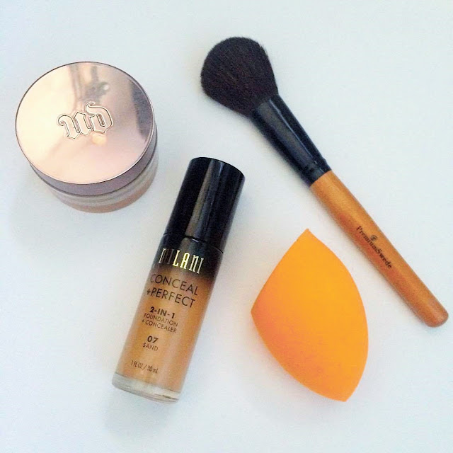 There are two foundations that I have been alternating between lately. The Milani 2 in 1 Conceal & Perfect Foundation in the shade Sand (£10) which I am testing out for an upcoming reveiew and the Rimmel Match Perfection foundation. I like both foundations because they are a decent medium coverage, a good colour match and don’t feel to heavy on my skin. I am constantly in a rush in the morning so don’t always have time to customise the coverage I want which is where the Urban Decay Naked Skin Ultra Definition Loose Finishing Powder (£23) comes in.