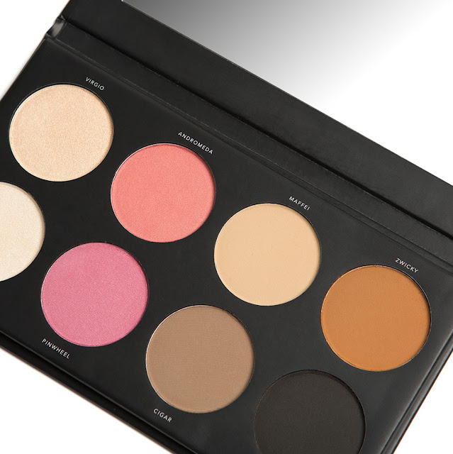 LH Cosmetics Infinity Palette Swatches. L-R: Fornax, Zwicky, Cigar, Maffei, Pinwheel, Andromeda, Mily Way and Virgio