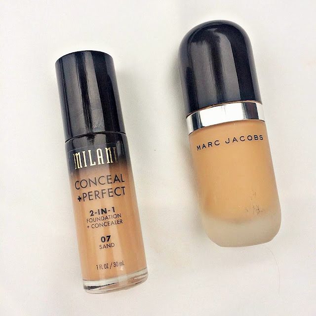 | Marc Jacobs Full Cover Foundation Concentrate Honey Light and Milani 2 in 1 Conceal and Perfect Foundation |